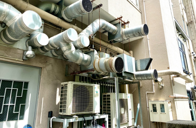 当社では、厨房やトイレ、工場などのさまざまな施設における換気ダクト設備を施工しています。